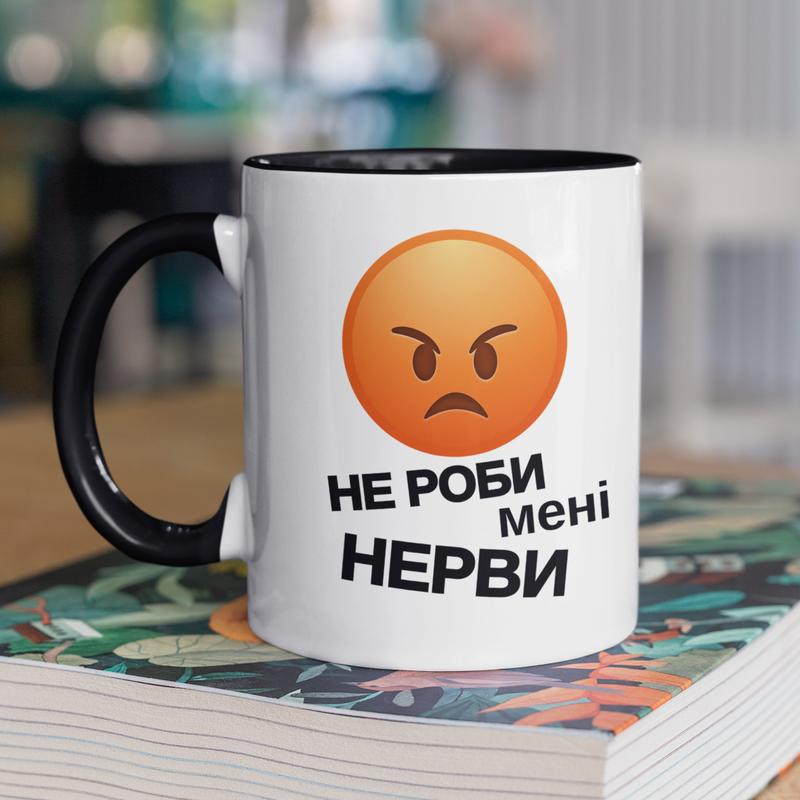 Чашка керамічна з принтом "не роби мені нерви" 330 мл, біла з чорною ручкою