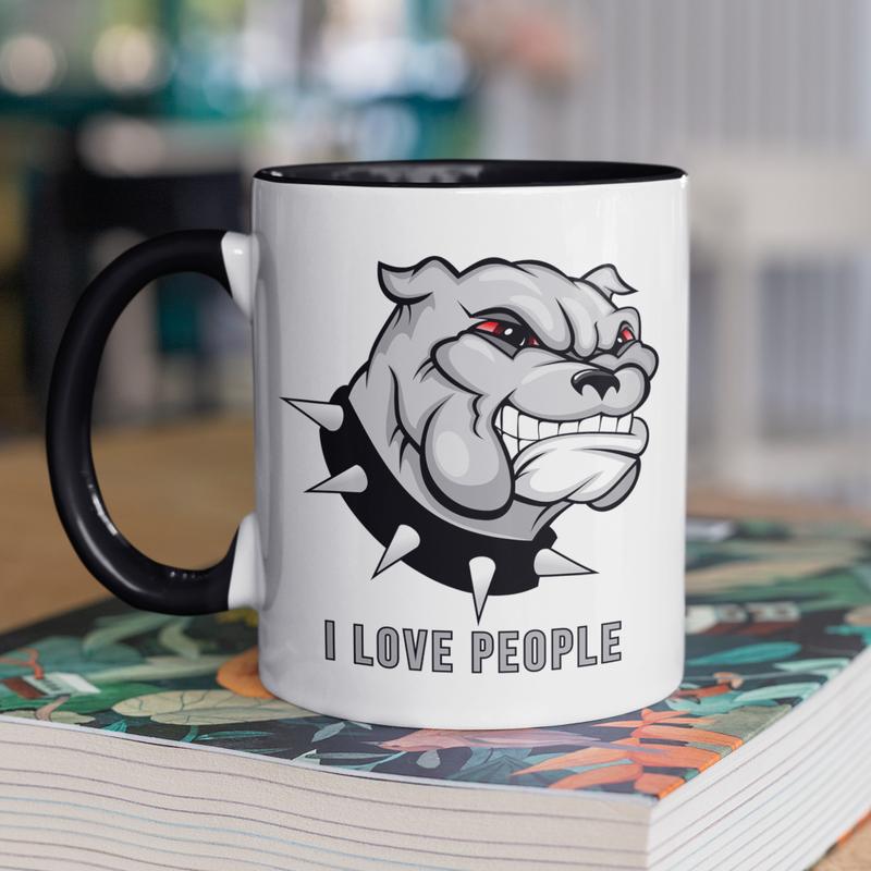Чашка керамічна з принтом "i love people" 330 мл, біла з чорною ручкою