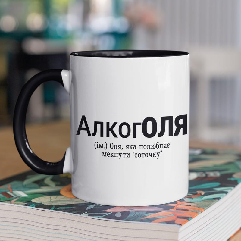 Чашка керамічна з принтом "алкоголя" 330 мл, біла з чорною ручкою