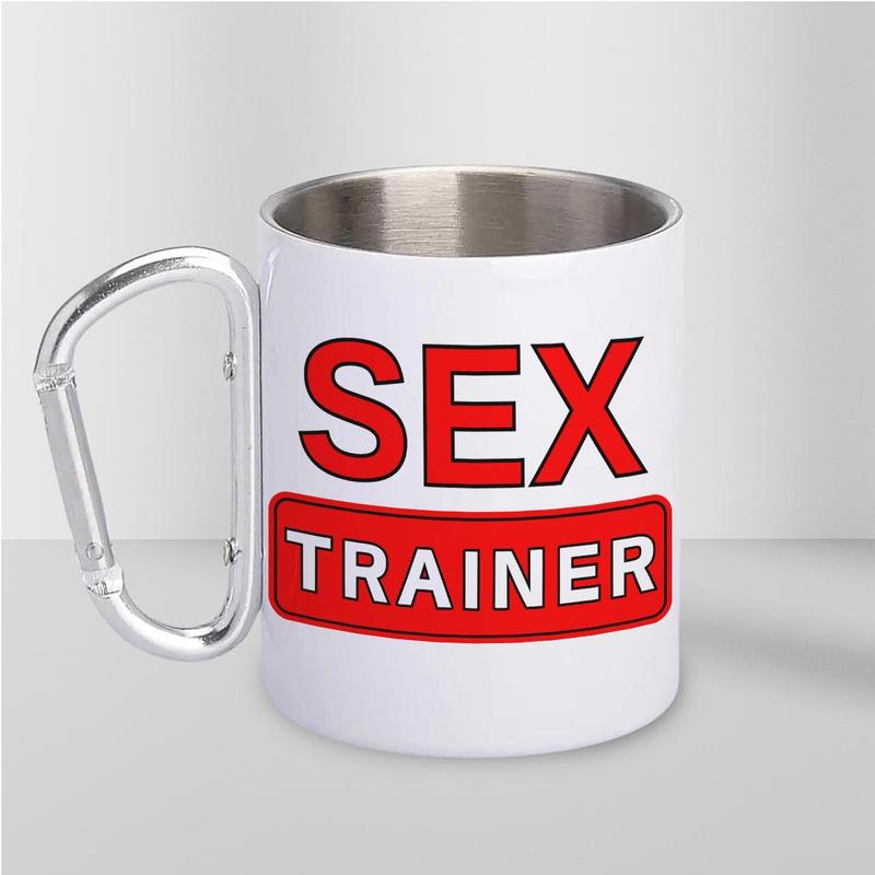 Чашка металева з принтом "sex trainer" 300 мл з карабіном, біла