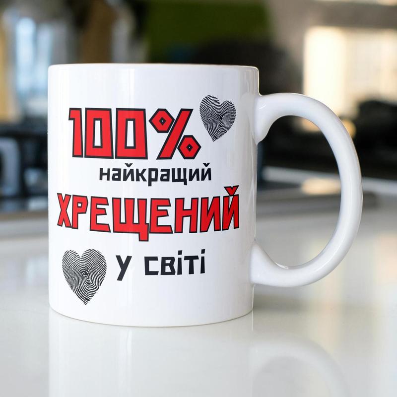 Кружка керамічна з принтом "100% найкращий хрещений" 330 мл біла