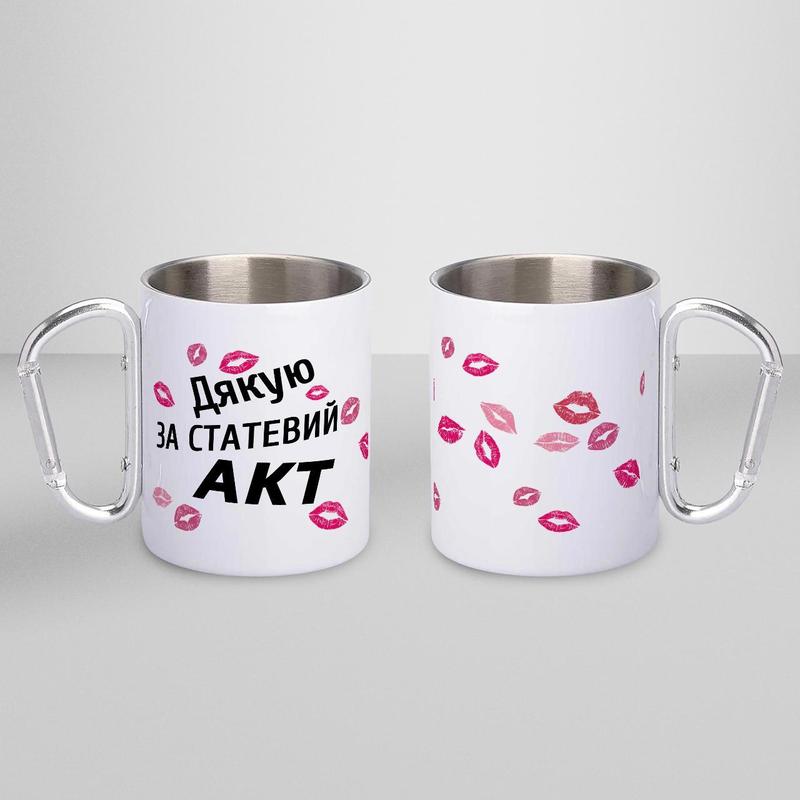 Чашка металева з принтом "дякую за акт" 300 мл з карабіном, біла