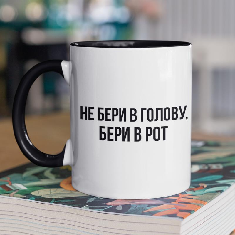 Чашка керамічна з принтом "не бери в голову" 330 мл, біла з чорною ручкою