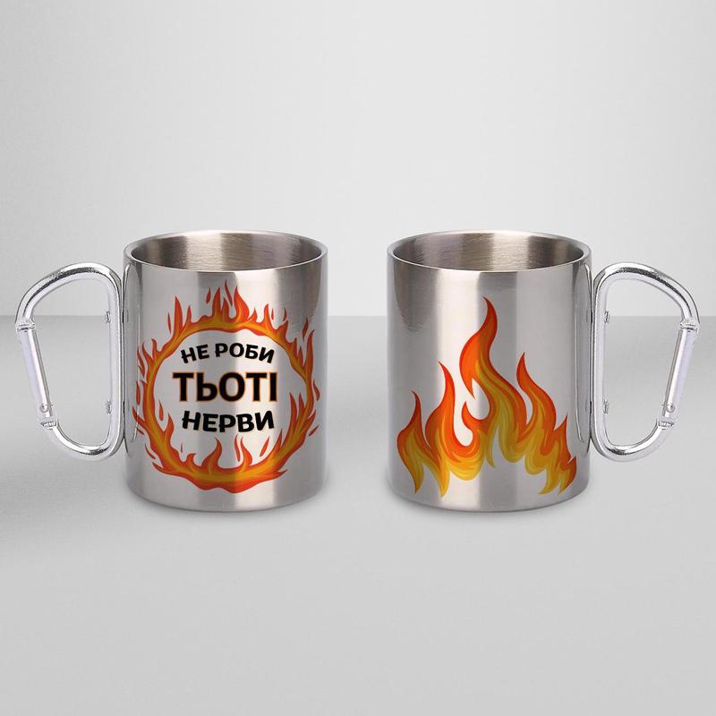 Чашка металева з принтом "не роби тьоті нерви" 300 мл з карабіном, срібляста