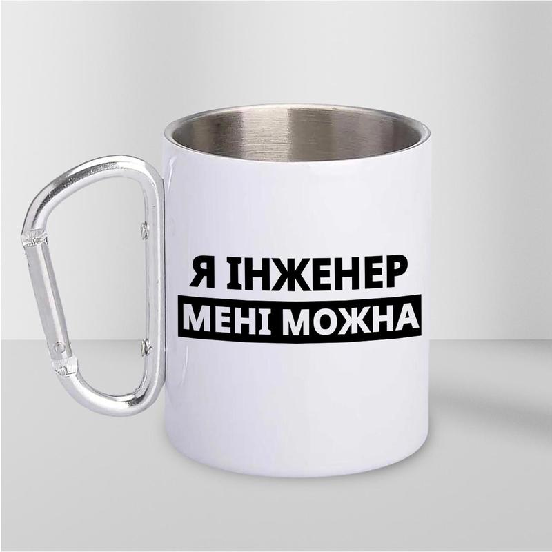 Чашка металева з принтом "я інженер мені можна" 300 мл з карабіном, біла