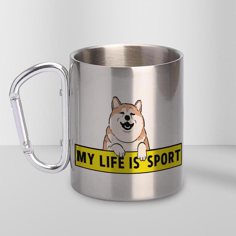Чашка металева з принтом "my life is sport" 300 мл з карабіном, срібляста