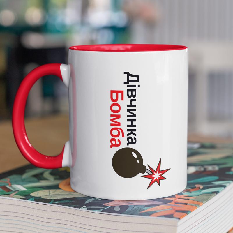 Чашка керамічна з принтом "дівчинка бомба" 330 мл, біла з червоною ручкою |easypick|