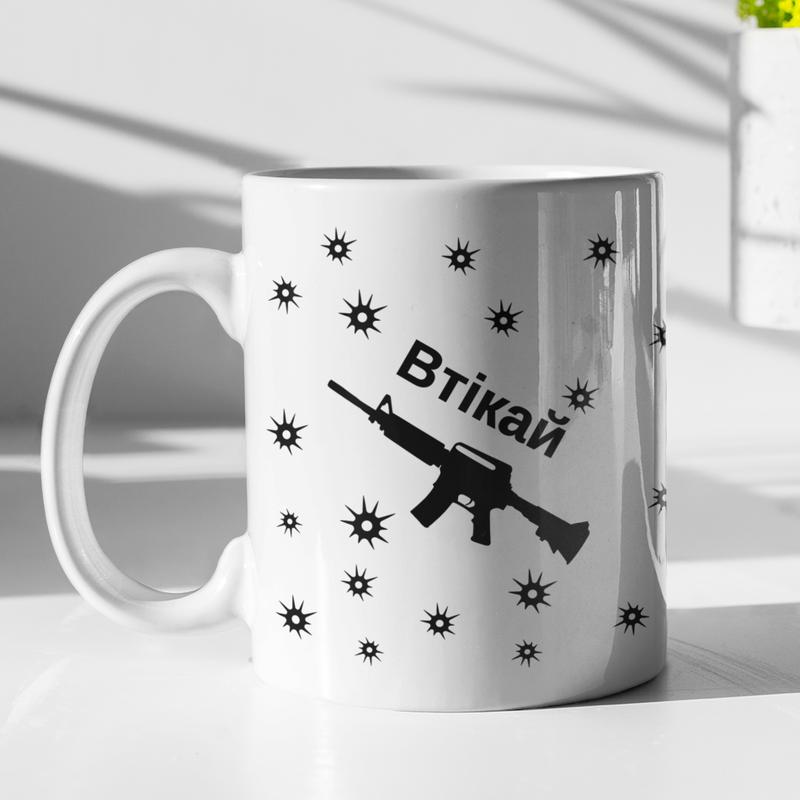 Чашка керамічна з принтом "втікай" 330 мл, біла |easypick|
