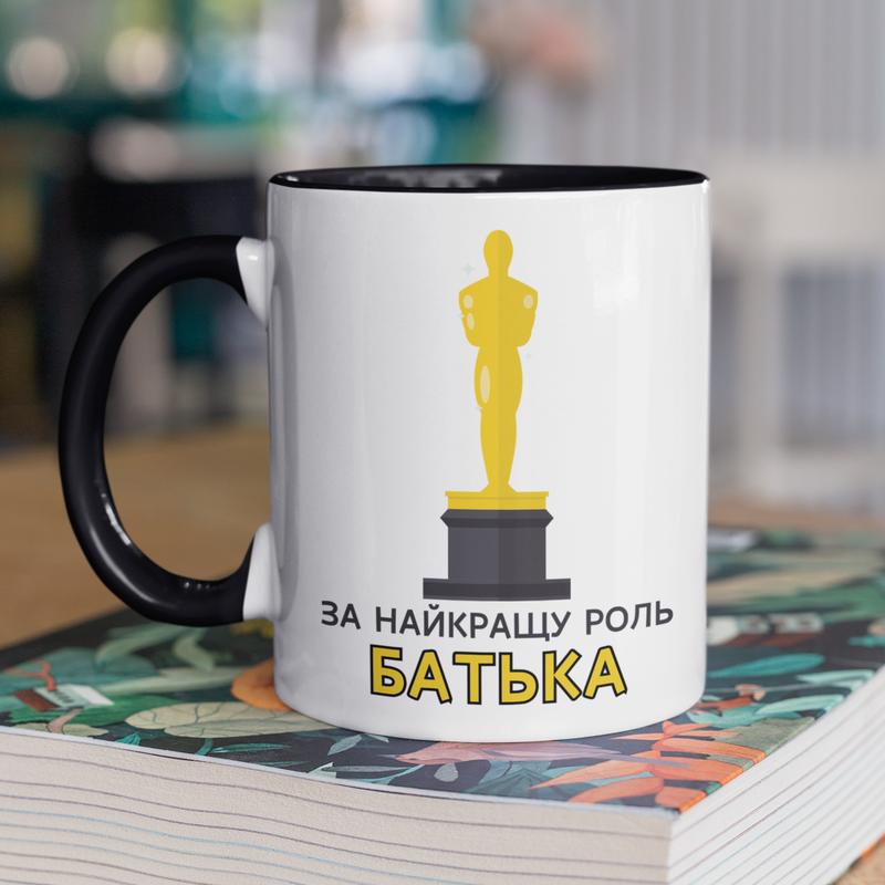 Чашка керамічна з принтом "за найкращу роль батька" 330 мл, біла з чорною ручкою |easypic...