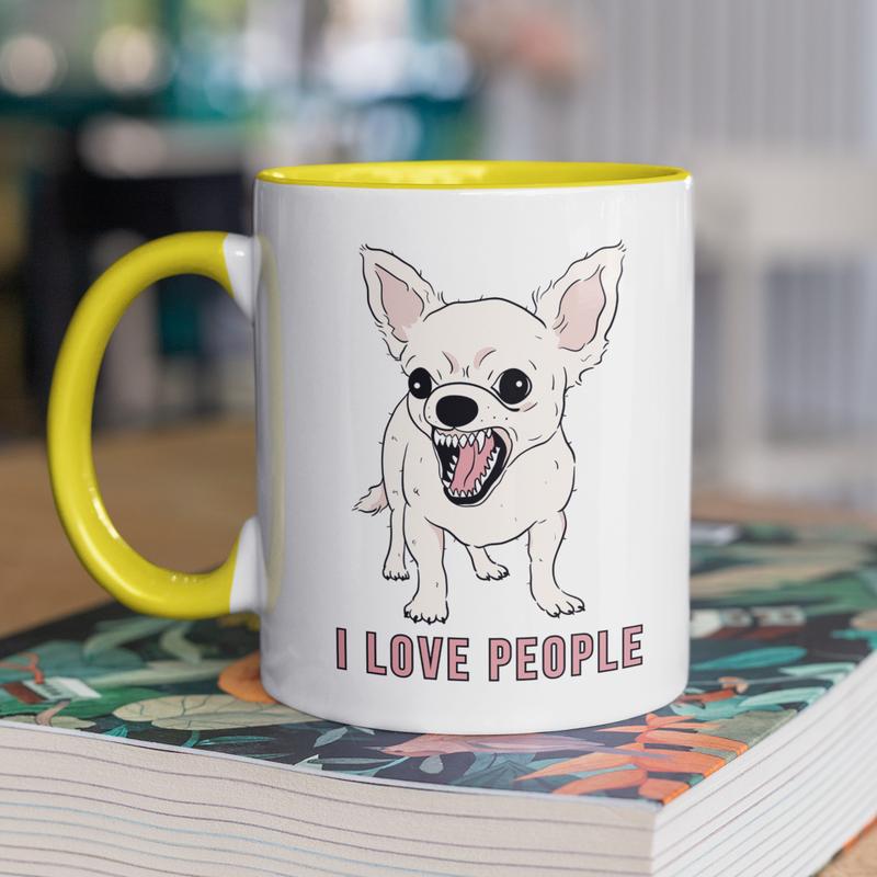 Чашка керамічна з принтом "i love people" 330 мл, біла з жовтою ручкою |easypick|