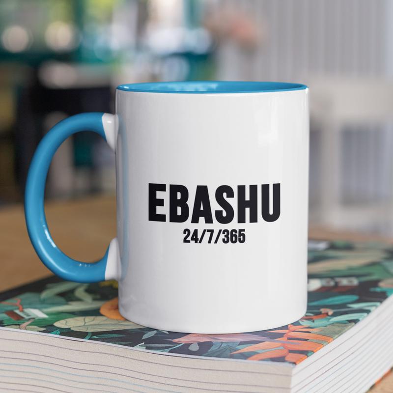 Чашка керамічна з принтом "ebashu" 330 мл, біла з блакитною ручкою |easypick|