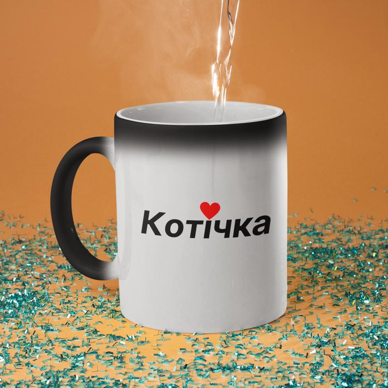 Чашка хамелеон керамічна з принтом "котічка" 330 мл |easypick|