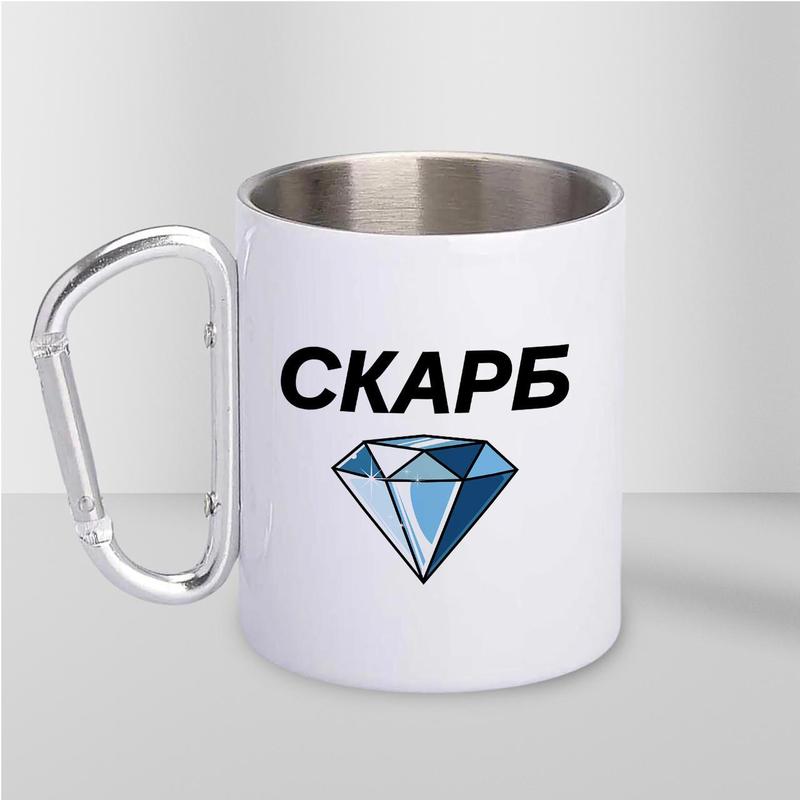 Чашка металева з принтом "скарб" 300 мл з карабіном, біла |easypick|