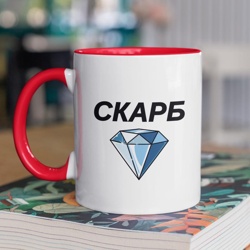 Чашка керамічна з принтом "скарб" 330 мл, біла з червоною ручкою |easypick|