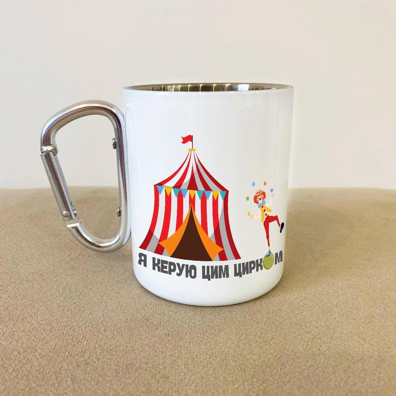 Кружка металева з карабіном "я керую цим цирком" 300 мл біла