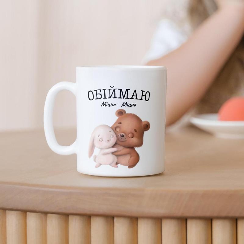 Кружка керамічна з принтом "обіймаю міцно" 330 мл біла