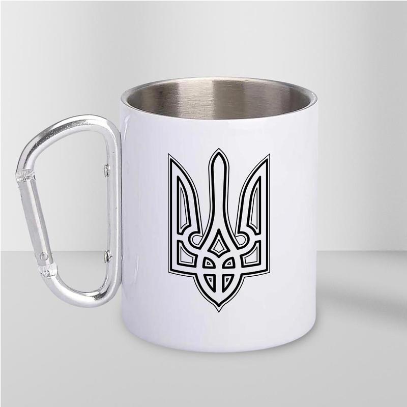 Кружка металева з карабіном "герб україни" 300 мл біла