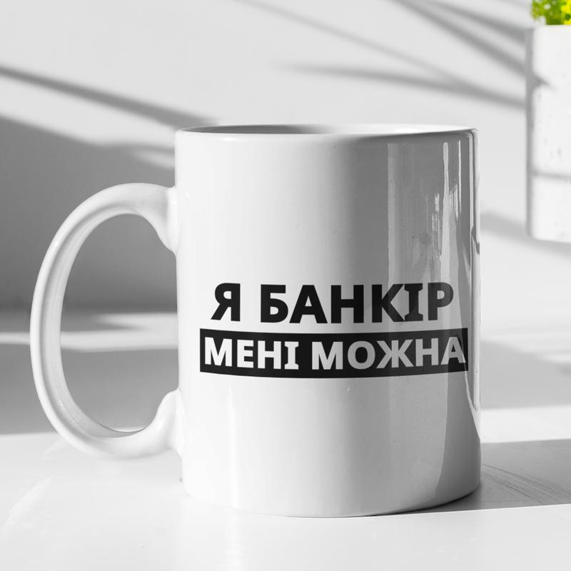 Чашка керамічна з принтом "я банкір мені можна" 330 мл, біла