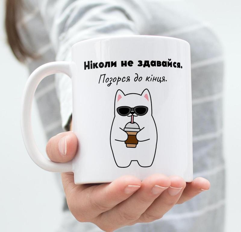 Кружка з принтом "ніколи не здавайся" 330 мл біла