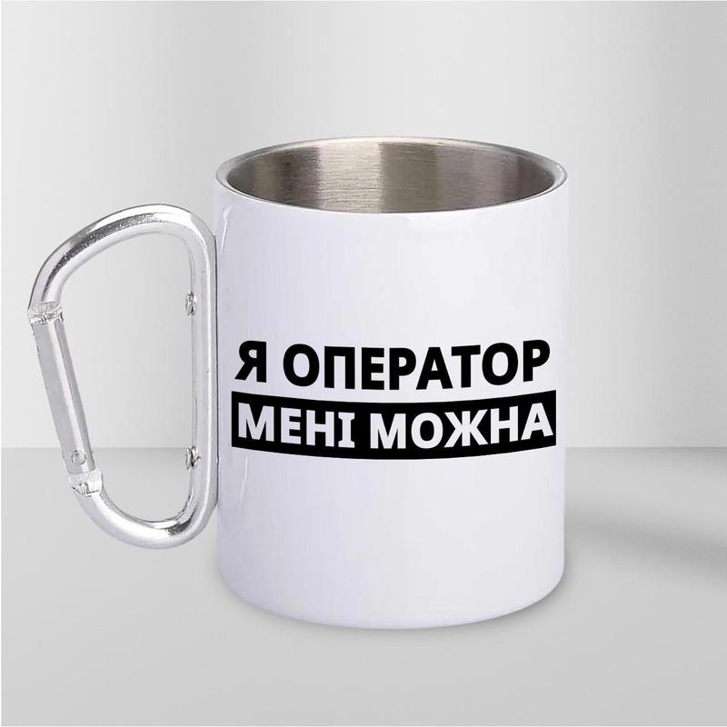 Чашка металева з принтом "я оператор мені можна" 300 мл з карабіном, біла