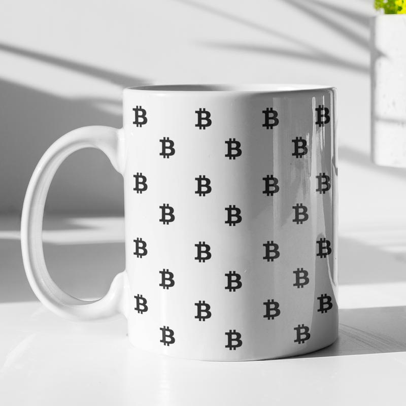 Чашка керамічна з принтом "bitcoin" 330 мл, біла