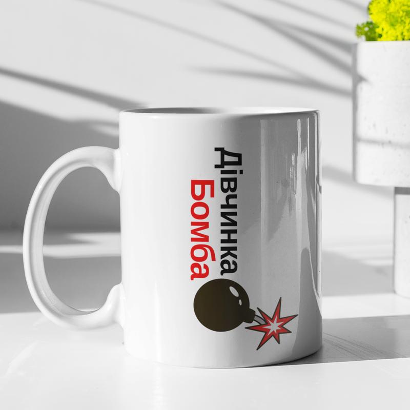 Чашка керамічна з принтом "дівчинка бомба" 330 мл, біла