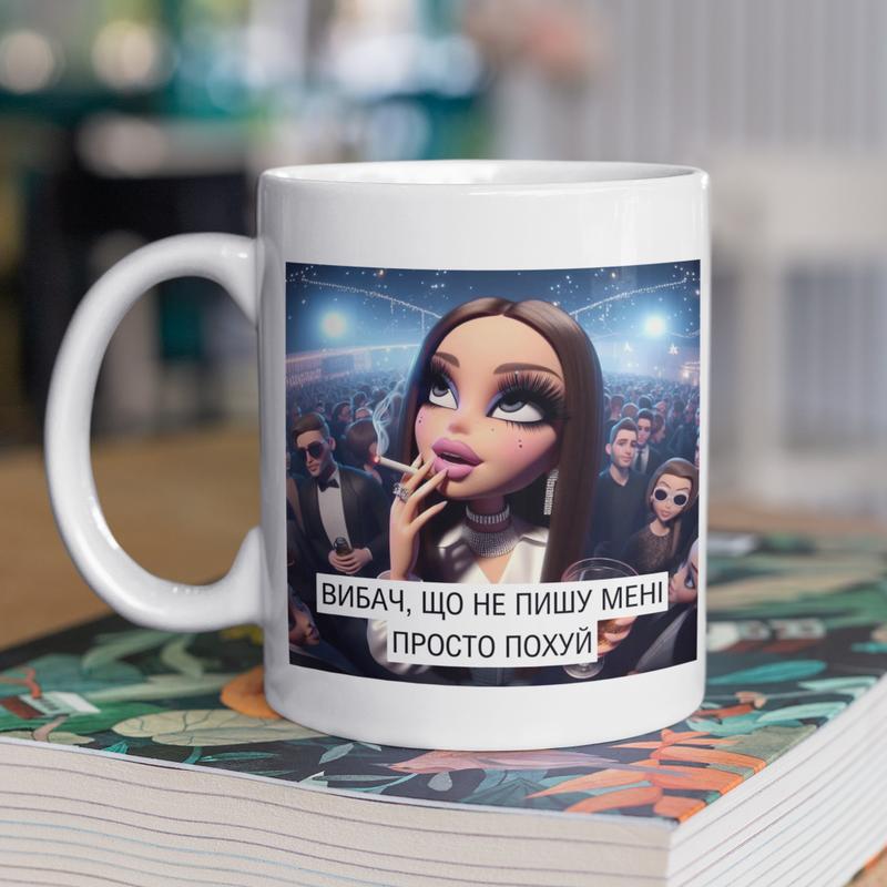 Чашка керамічна з принтом "вибач що не пишу" 330 мл, біла