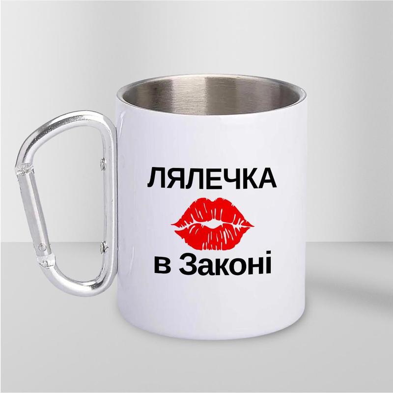Чашка металева з принтом "лялечка в законі" 300 мл з карабіном, біла