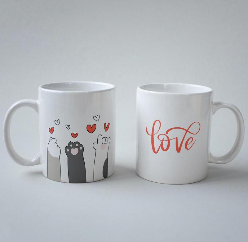 Кружка з принтом "лапки love" 330 мл біла