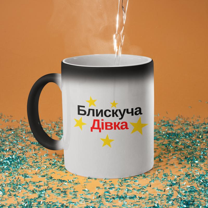 Чашка хамелеон керамічна з принтом "блискуча дівка" 330 мл