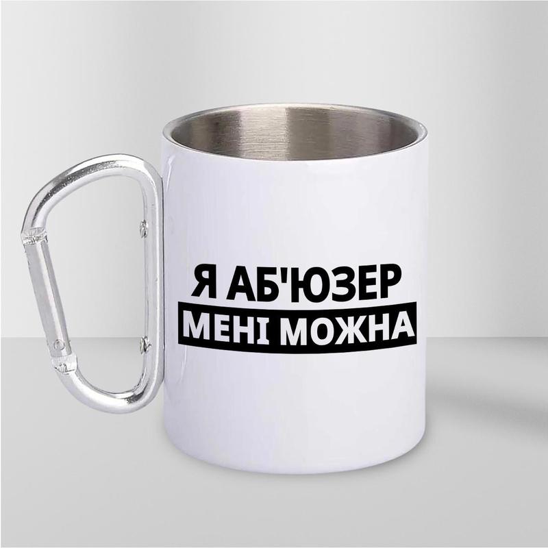 Чашка металева з принтом "я аб'юзер мені можна" 300 мл з карабіном, біла