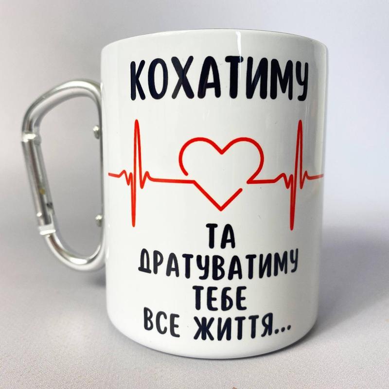 Кружка металева з карабіном "кохатиму та дратуватиму тебе все життя" 300 мл біла