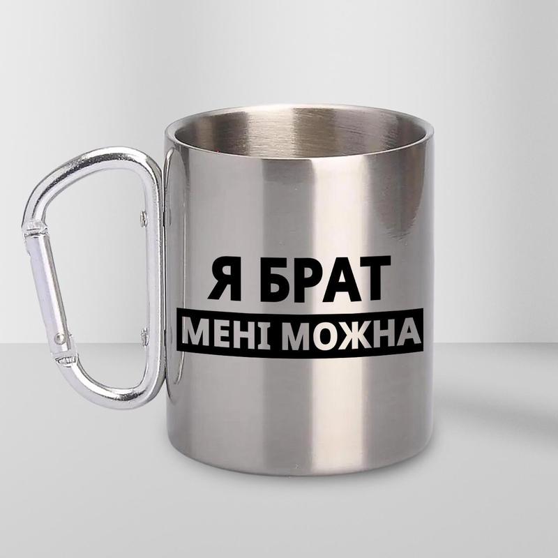 Чашка металева з принтом "я брат мені можна" 300 мл з карабіном, срібляста