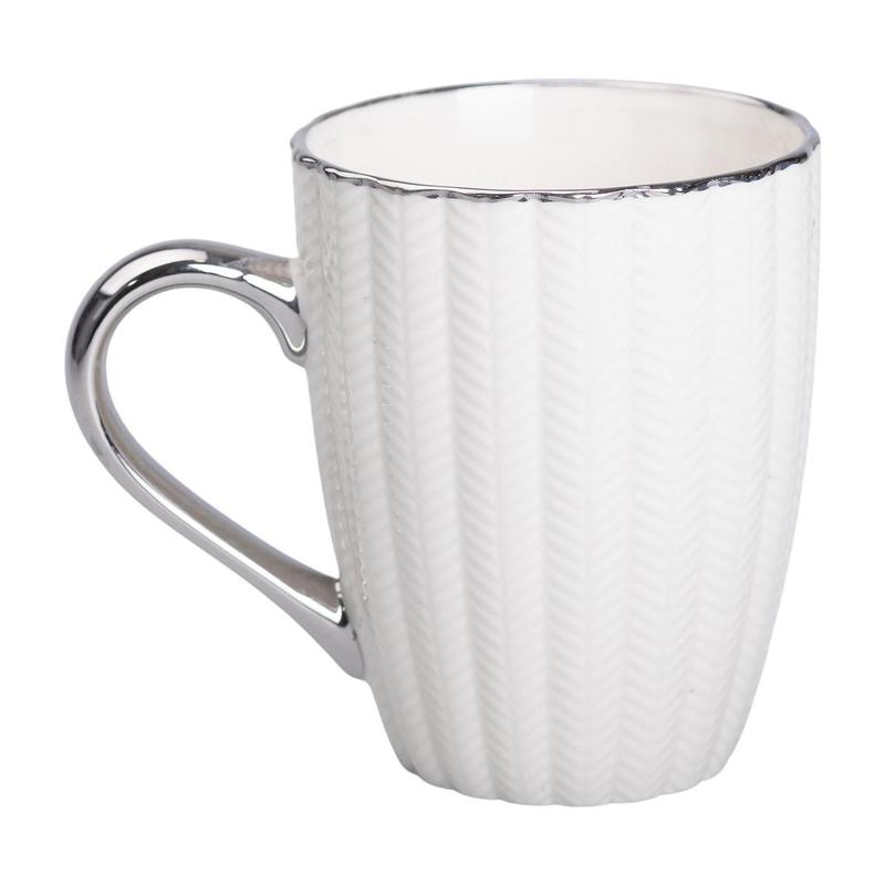 Керамічна чашка об'ємом 400 мл зі сріблястим обідком і ручкою - це елегантний і стильний аксесуар для вашого чаювання. Вона стане чудовим доповненням до святкових моментів або особливих обідів, додаючи вишуканості вашому столу. Основні характеристики чашки об'єм 400 мл; висота 10.5 см; верхній діаметр 8 см. Основні переваги чашки Кераміка чудово зберігає тепло напою, дозволяючи вам насолоджуватися чаєм або кавою довше. Кераміка - це натуральний та безпечний матеріал, який не виділяє шкідливих речовин. Чашки підходять для гарячих та холодних напоїв. Керамічні чашки при правильному догляді прослужать вам довгі роки. Чашка має компактний об'єм, що дозволяє насолоджуватися улюбленими напоями в комфортній кількості, а її зручна форма робить процес пиття приємним і комфортним. Виготовлена із якісної кераміки, вона зберігає тепло напоїв, дозволяючи насолоджуватися ними довше. Завдяки розкішному дизайну, ця чашка стане чудовим подарунком для близьких або колег, додаючи елегантності у будь-яку обстановку.