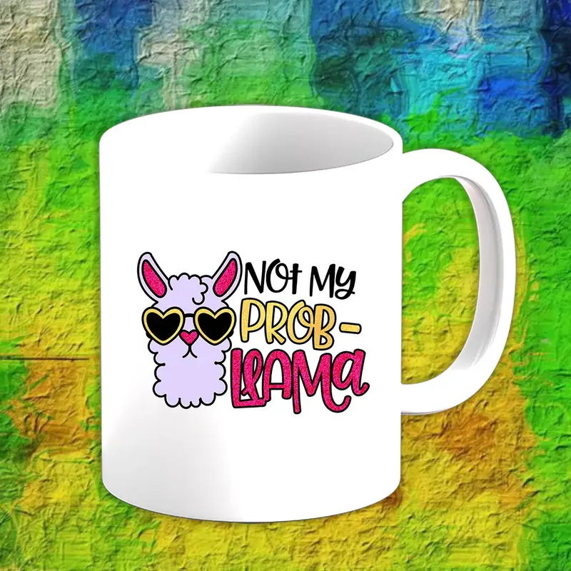 Біла кружка (чашка) з принтом альпака "not my prob-llama"