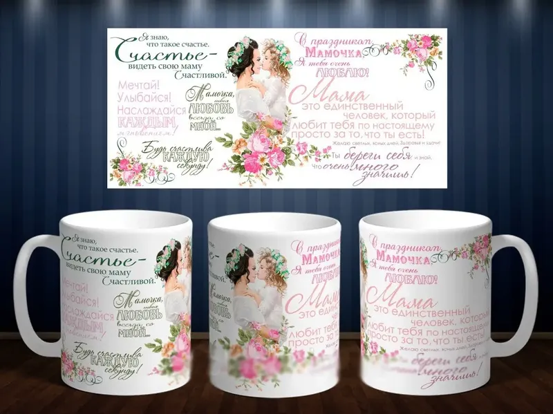 Белая кружка (чашка) с принтом "с праздником, мамочкой"
