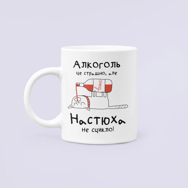 Чашка керамічна кружка з принтом алкоголь це страшно але настюха не сцикло настя анастасія...