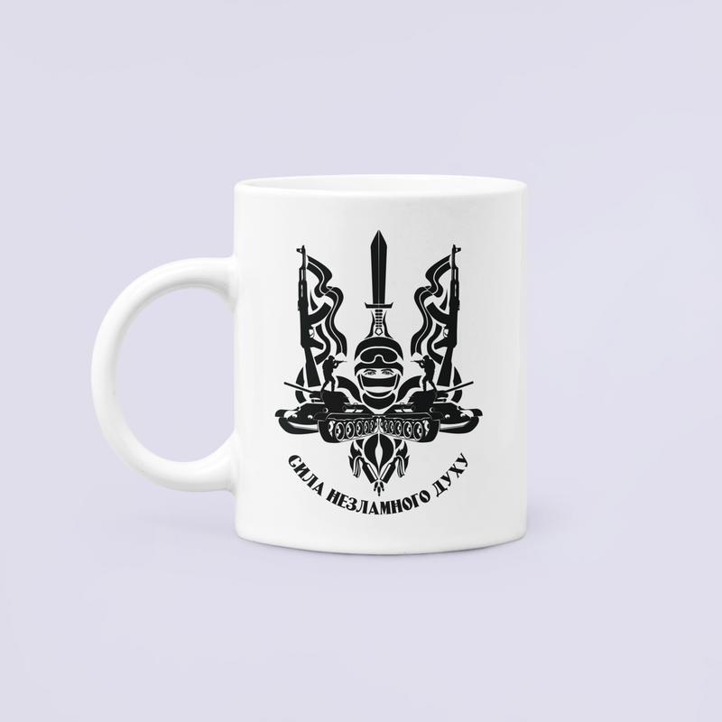 Чашка керамічна кружка з принтом сила незламного духу герб воїн біла 330 мл