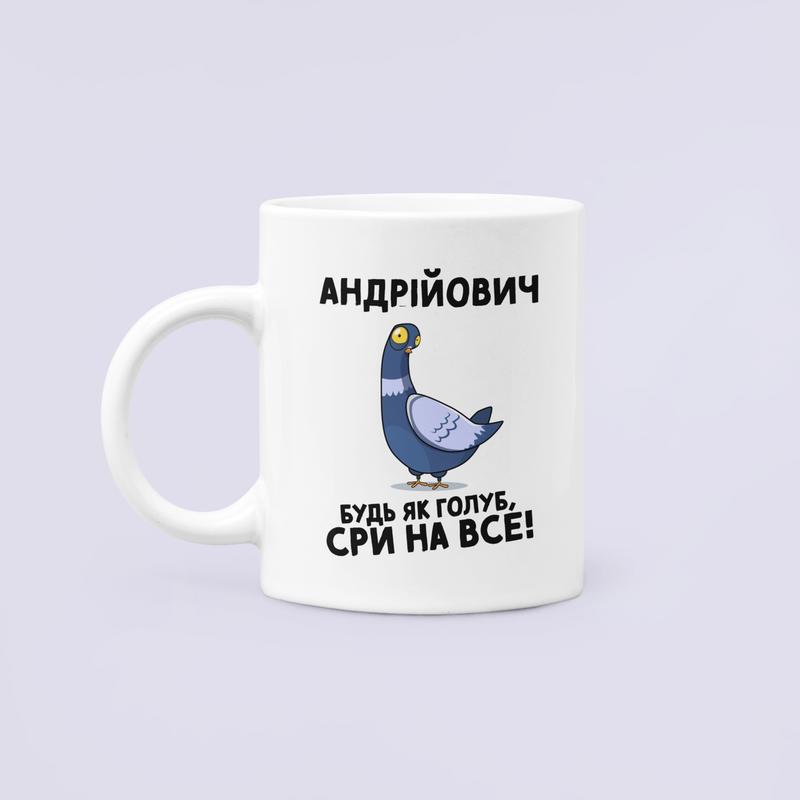 Чашка керамічна кружка з принтом андрійович будь як голуб андрійович біла 330 мл