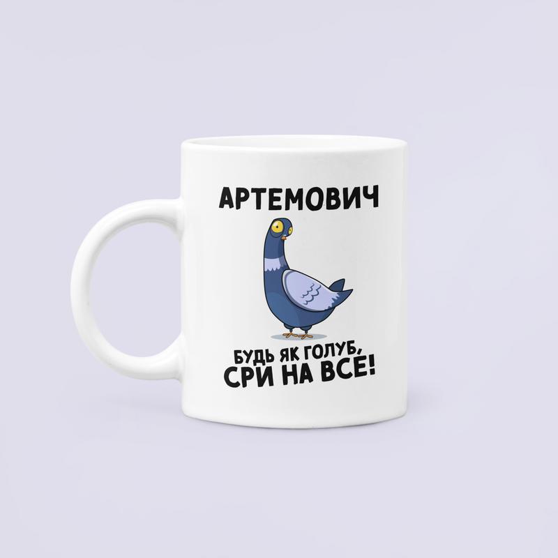 Чашка керамічна кружка з принтом артемович будь як голуб артемович біла 330 мл