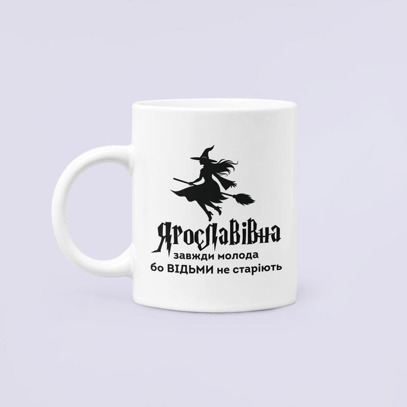 Чашка керамічна кружка з принтом ярославівна завжди молода бо відьми не старіють біла 330...