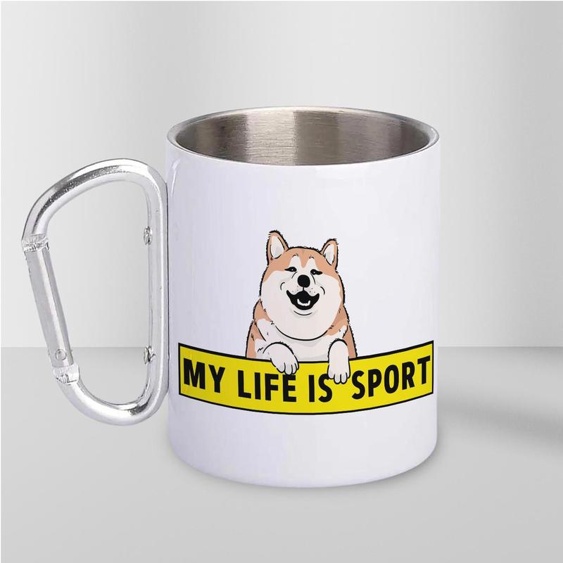 Чашка металева з принтом "my life is sport" 300 мл з карабіном, біла