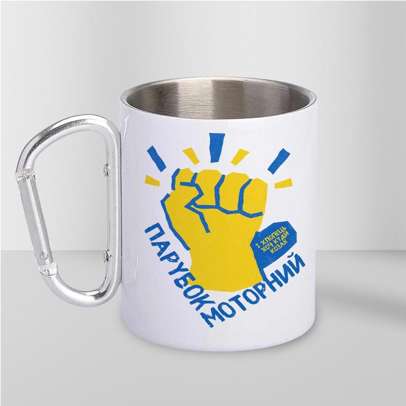 Кружка металева з карабіном "парубок моторний" 300 мл біла