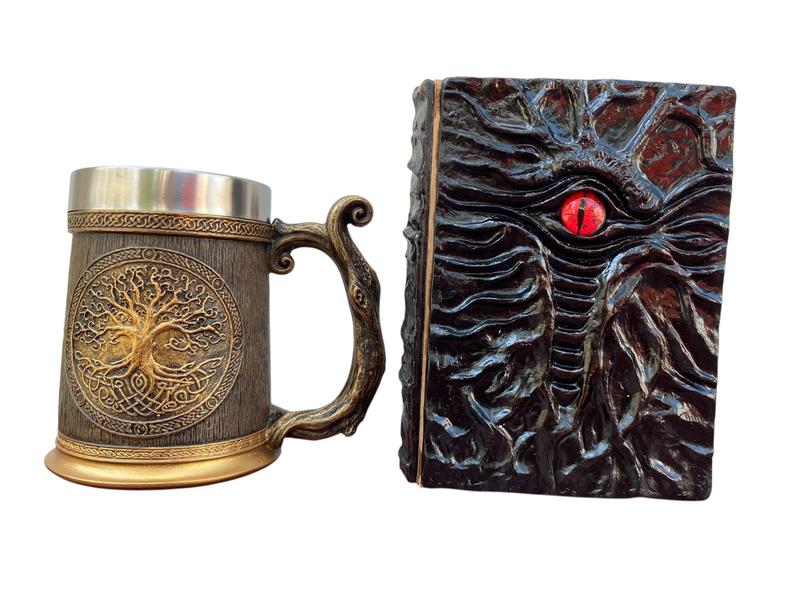 Подарунковий набір кухоль 3d друїд ігграсиль і блокнот 3d «книга, що дивиться у відповідь»