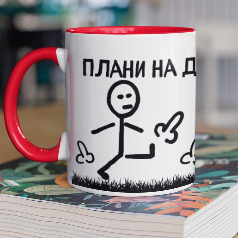 Чашка керамічна з принтом "плани на день" 330 мл, біла з червоною ручкою