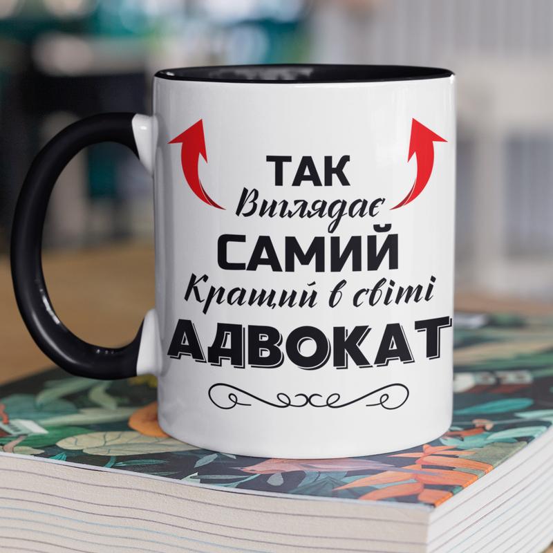 Чашка керамічна з принтом "так виглядає самий кращий в світі адвокат" 330 мл, біла з чорно...