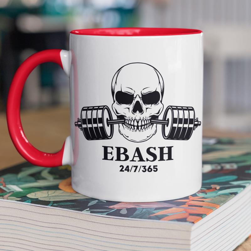 Чашка керамічна з принтом "ebash" 330 мл, біла з червоною ручкою