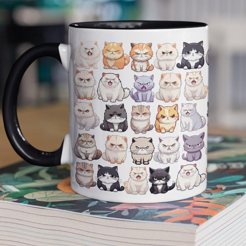 Чашка керамічна з принтом "злі котики" 330 мл, біла з чорною ручкою