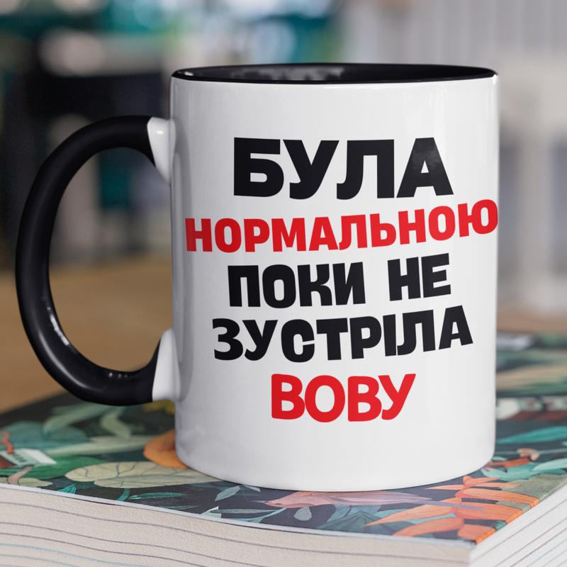 Чашка керамічна з принтом "була нормальною поки не зустріла вову" 330 мл, біла з чорною ру...