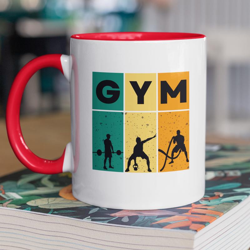 Чашка керамічна з принтом "gym" 330 мл, біла з червоною ручкою